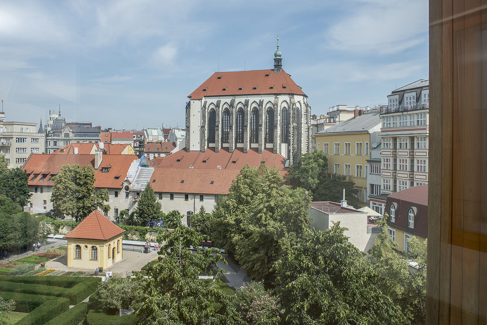 Nabízíme k pronájmu elegantní byt o dispozici 2+kk, který se nachází ve 4. nadzemním podlaží výjimečné rezidence Langhans – historického paláce z konce 19. století, jenž byl kompletně zrekonstruován renomovaným architektonickým studiem Lábus AA. Citlivá přístavba moderních bytových jednotek doplnila původní architekturu o vzdušné a funkční prostory splňující nároky současného bydlení. Rezidence Langhans se nachází v srdci Prahy – se vstupem z ulice Vodičkova a zároveň přímým kontaktem s klidnou Františkánskou zahradou. Díky této poloze nabízí jedinečnou kombinaci vynikající dopravní dostupnosti (tramvaj, metro), kompletní občanské vybavenosti v okolí (Václavské náměstí) a zároveň klidu s výhledy do zeleně i na panorama Pražského hradu. Samotný byt nabízí prostorný obývací pokoj s mírně odděleným kuchyňským koutem, jehož dominantou je výhled do Františkánské zahrady. Ložnice je elegantně propojena s koupelnou obloženou mramorem. Samostatné WC a komora zajišťují maximální komfort a funkčnost. K vybavení domu patří výtah, recepce s 24/7 ostrahou a centrální vytápění. Byt je ideální volbou pro ty, kteří hledají stylové bydlení s důrazem na architekturu, historii i moderní standard v naprosto výjimečné lokalitě.