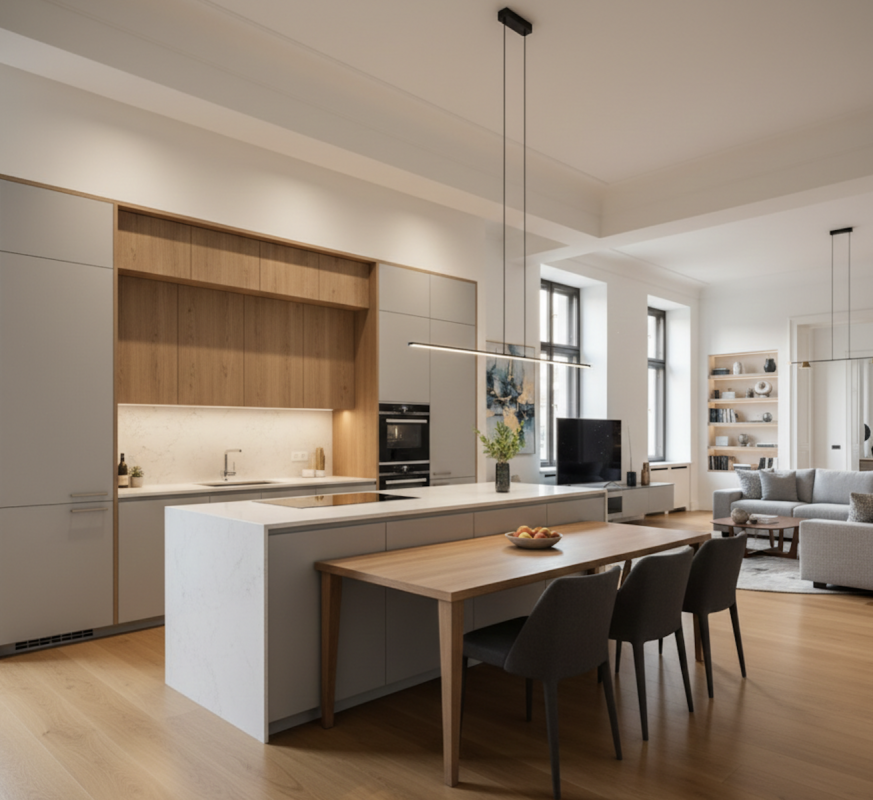 Nabízíme exkluzivně k prodeji prostorný a nadstandardně zrekonstruovaný byt 3+kk o velikosti 108 m², umístěný ve 3. nadzemním podlaží reprezentativního domu v ulici Modřanská. K bytu náleží také nádherná terasa o ploše 16 m², která poskytuje příjemný prostor pro odpočinek i posezení s výhledem do okolní zeleně. Interiér je zpracován v moderním, elegantním designu s důrazem na kvalitu a nadčasovost. Byt sestává z prostorného obývacího pokoje, dvou samostatných ložnic, kuchyně s jídelní částí a stylové koupelny. Velkorysé dispoziční řešení, vysoké stropy a velká okna dodávají prostoru vzdušnost a výjimečný charakter. Dům se nachází v atraktivní části Modřan s výbornou občanskou vybaveností a rychlým spojením do centra Prahy. V blízkém okolí jsou cyklostezky, sportoviště, restaurace, obchody i přírodní parky. Lokalita je ideální pro ty, kteří hledají spojení komfortního městského bydlení s klidným prostředím u řeky. Tento byt představuje jedinečnou příležitost pro náročné klienty hledající prostorné a luxusní bydlení v žádané pražské lokalitě.
