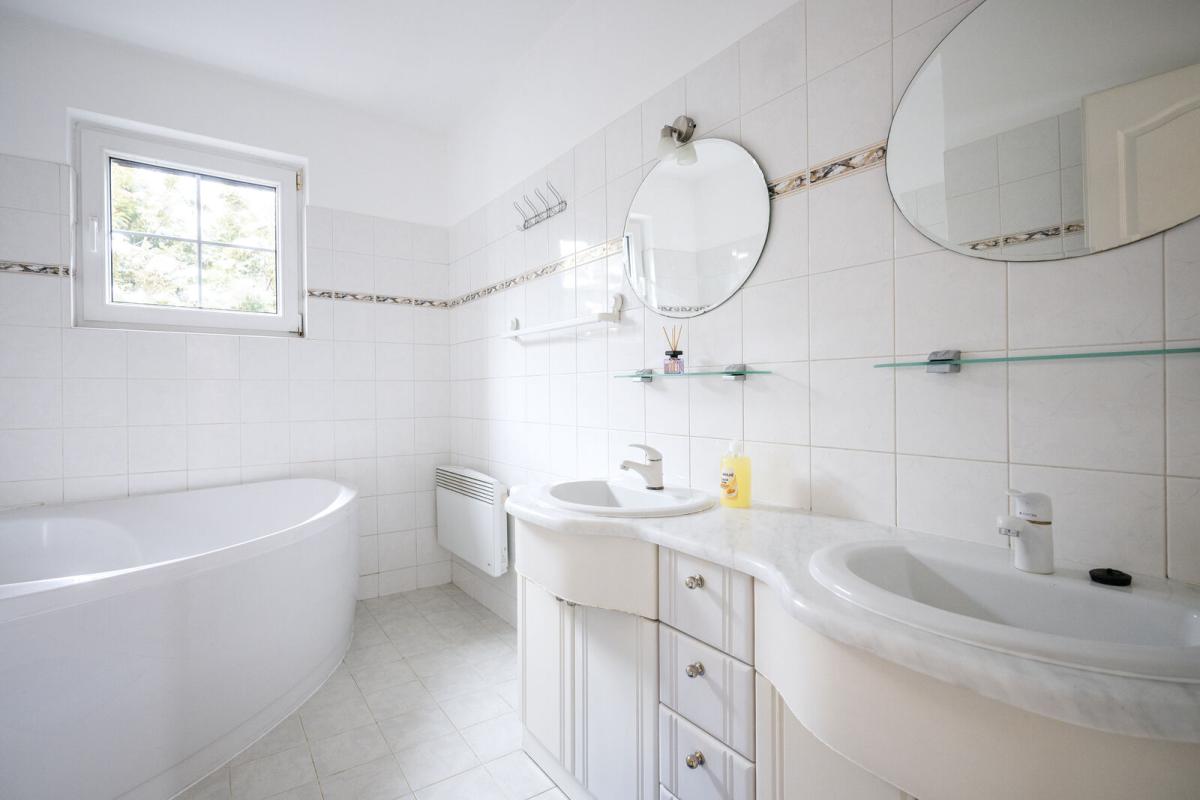 Nabízíme k pronájmu reprezentativní vilu v prestižní a vyhledávané lokalitě Praha 6 – Nebušice, v klidné rezidenční ulici. Samostatně stojící vila disponuje užitnou plochou 365 m² a nachází se na pozemku o velikosti 539 m². V přízemí domu se nachází prostorná vstupní hala, plně vybavená kuchyň se spotřebiči (sporák, trouba, lednice, myčka, pračka, sušička), jídelna, samostatná ložnice, koupelna s rohovou vanou a sprchovým koutem, samostatné WC a velkorysý obývací pokoj s krbem a přímým vstupem na zahradu a terasu. Výjimečným benefitem této úrovně je vnitřní vyhřívaný bazén s přímým napojením na obytnou část. V patře se nachází celkem pět ložnic, koupelna s rohovou vanou, samostatné WC a balkon. Dům je zcela podsklepen, což poskytuje dostatek technického a skladovacího zázemí. Okna jsou plastová, vybavená bezpečnostními mřížemi a roletami. Podlahy jsou řešeny kombinací keramické dlažby, plovoucích a vinylových podlah. Vytápění objektu je zajištěno elektrickým topením. Významnou předností nemovitosti je vyhřívaný krytý bazén s plně automatickou odvlhčovací jednotkou, s možností temperace vody až na 30 °C, přístupný z obývacího pokoje i venkovní terasy. Celý objekt je vybaven elektronickým zabezpečovacím systémem s možností napojení na pult centrální ochrany. Lokalita Nebušic je dlouhodobě považována za jednu z nejžádanějších rezidenčních oblastí Prahy, a to zejména díky klidnému prostředí, blízkosti přírody a vynikající občanské vybavenosti. V docházkové vzdálenosti se nachází pošta, restaurace, obchody, městský úřad, lékařské ordinace (praktický lékař, pediatr), mateřská i základní škola, sportovní hala, tenisové kurty, jezdecký oddíl a mezinárodní mateřská škola Global Concepts. International School of Prague je dostupná přibližně 10 minut chůze. V bezprostřední blízkosti se nachází chráněná krajinná oblast Divoká Šárka s koupalištěm a rozsáhlou sítí cyklistických a turistických tras. Letiště Václava Havla je vzdáleno cca 10 minut jízdy autem, stanice metra A – Bořislavka je dostupná přibližně 15 minut autobusem. Nemovitost je ideální volbou pro náročné klienty hledající klidné rodinné bydlení s nadstandardním komfortem, případně pro diplomatické či manažerské využití.
