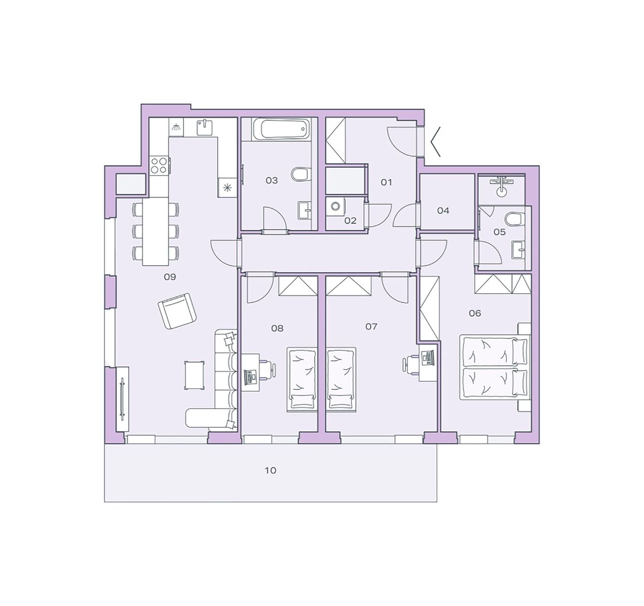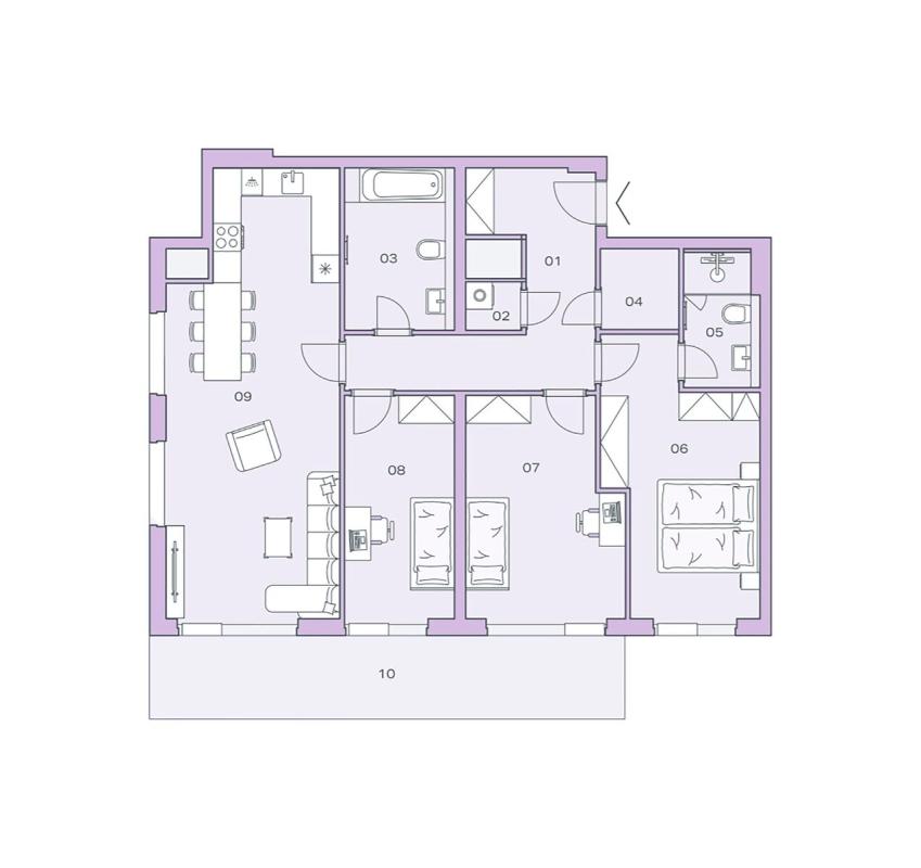 Byt o dispozici 4+kk a podlahové ploše 116,3 m² je součástí projektu Ahoj, Vanguard – místa, kde se technologie a komfort setkávají s jedinečnou atmosférou Modřan. Nachází se v 8. podlaží s jihozápadní orientací, která zajišťuje dostatek světla po celý den. Dispozice zahrnuje prostorný obývací pokoj s přípravou na kuchyňský kout, tři samostatné ložnice a praktickou komoru, která poskytuje dostatek úložného prostoru. Nechybí koupelna, samostatné WC a vstupní chodba. Součástí bytu je také prostorný balkon o ploše 19,5 m², ideální pro odpočinek a relaxaci. Byt je dokončen ve stavu fit out – s hotovými podlahami, sanitou a přípravou pro kuchyň, takže si interiér můžete doladit přesně podle svého stylu. Projekt Ahoj, Vanguard přináší moderní prvky, které posouvají bydlení na vyšší úroveň: posuvná velkoformátová okna, podlahové vytápění, rekuperaci, chlazení, a úsporné technologie v podobě tepelných čerpadel a fotovoltaiky. Pro relaxaci je k dispozici střešní terasa s panoramatickými výhledy na město – ideální místo pro odpočinek i inspiraci. Modřany patří k nejatraktivnějším pražským čtvrtím, kde se setkává energie města s klidem přírody. Přímo za domem začíná lesní čtvrť Belárie, nedaleko se nachází Arcibiskupská vinice, rozlehlý lesopark Hodkovičky a cyklostezka podél Vltavy. Do centra Prahy se dostanete za pár minut, takže Modřany nabízejí pohodlné, aktivní a vyvážené bydlení.